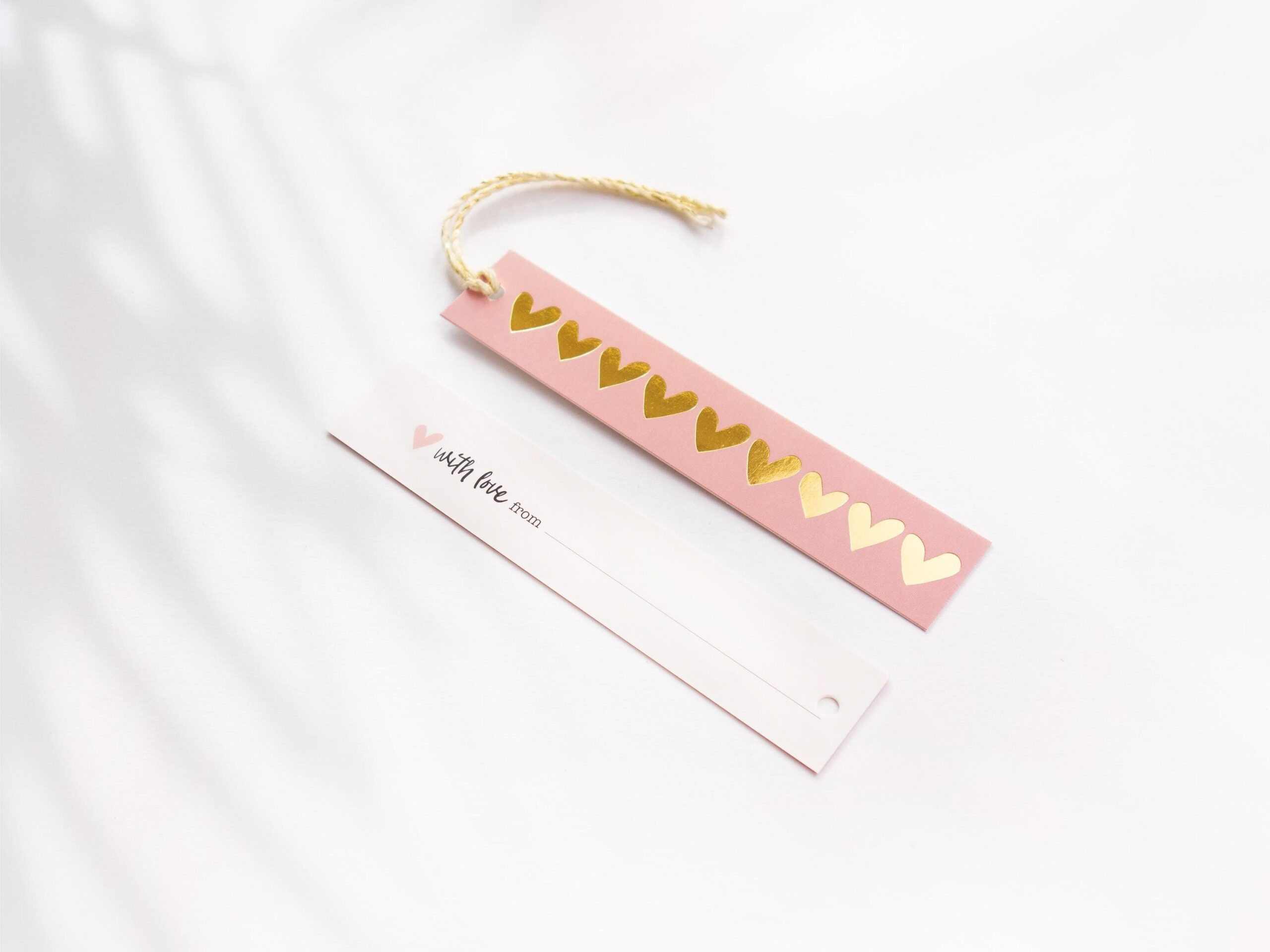 Geschenkanhänger Herzen (rosa-gold) – 5er Set inkl. Schnur