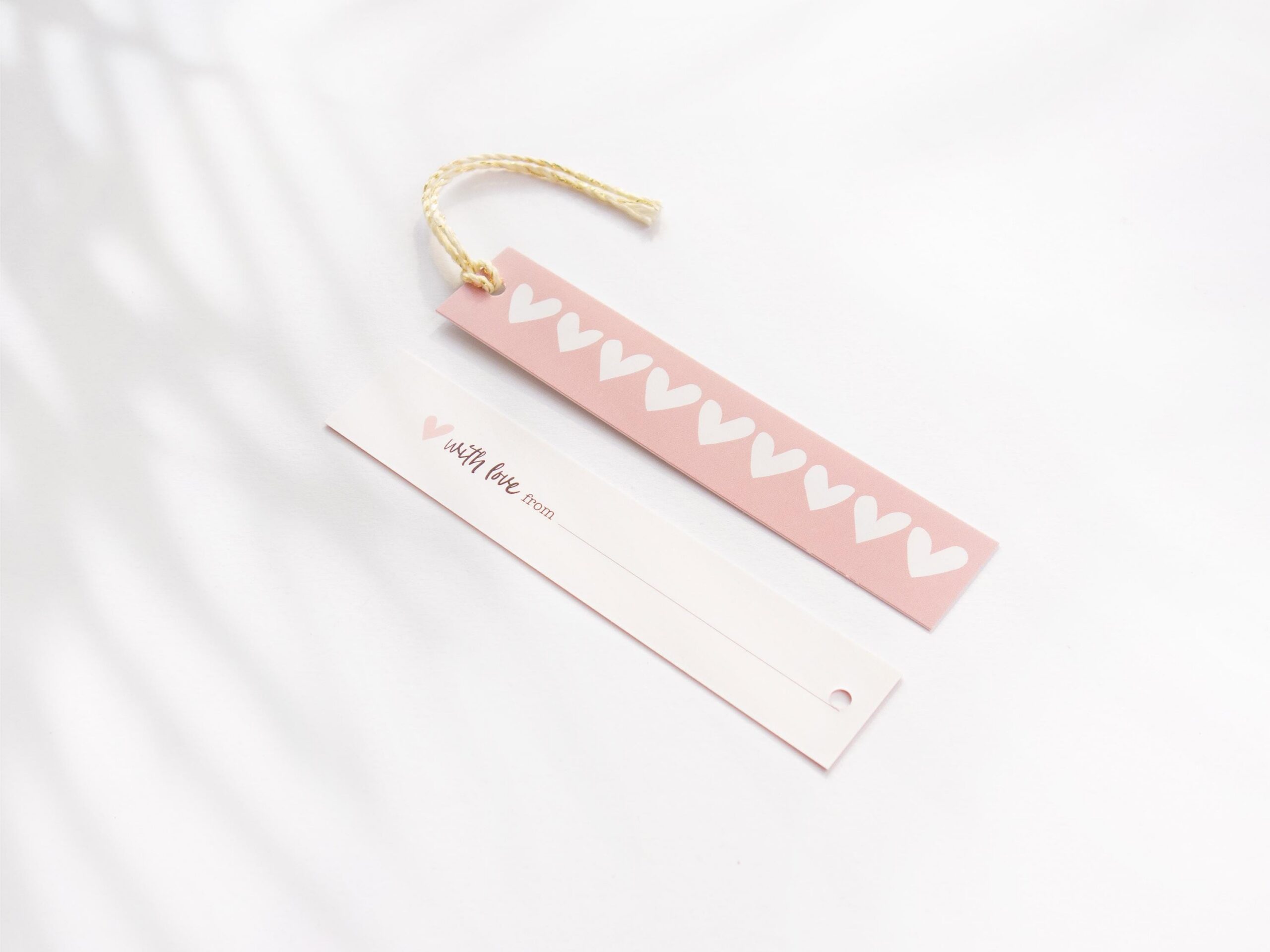 Geschenkanhänger Herzen (rosa-weiß) – 5er Set inkl. Schnur