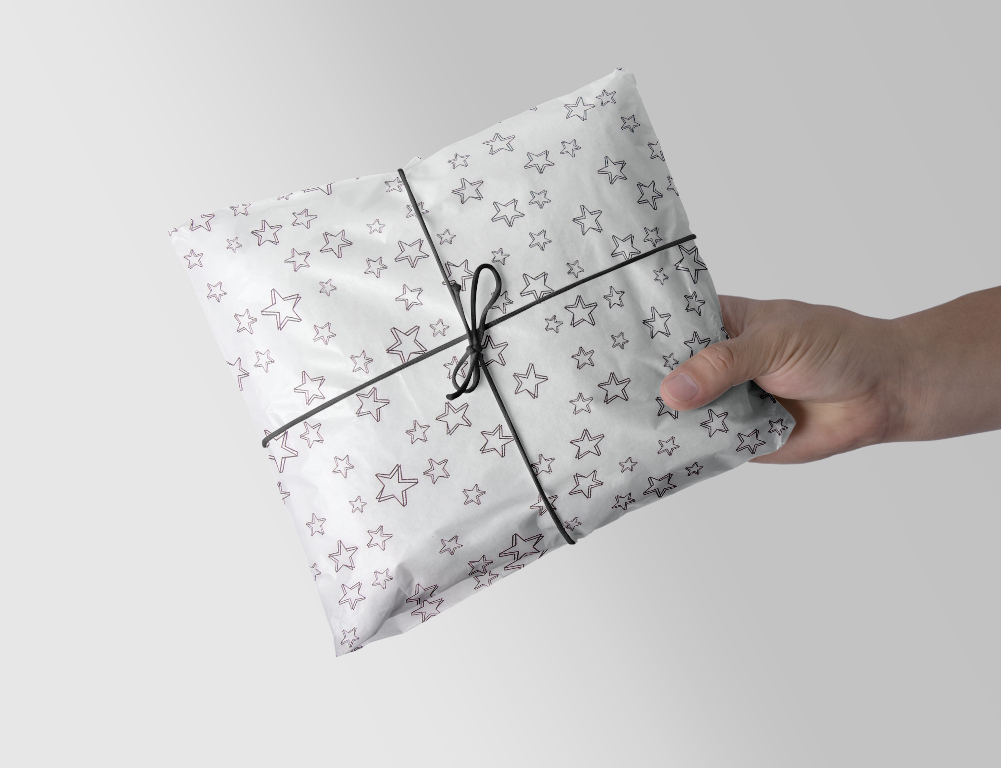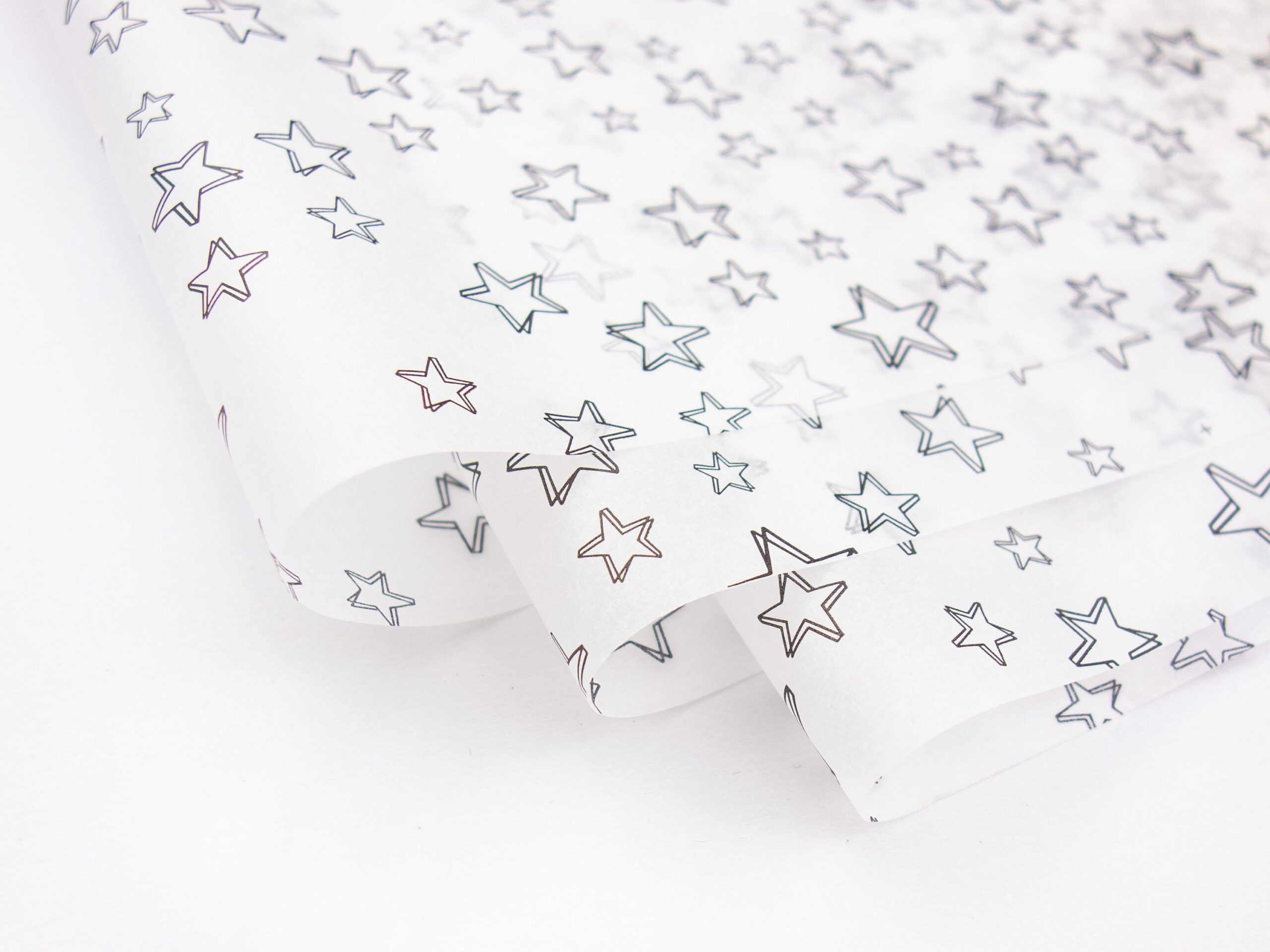 Dieses zarte Seidenpapier mit schwarzen Sternchen auf weißem Hintergrund eignet sich nicht nur zum stilvollen Verpacken von Geschenken, sondern auch als Füllmaterial, für Bastel- und DIY-Projekte oder als edles Tissue Paper für Versandverpackungen.